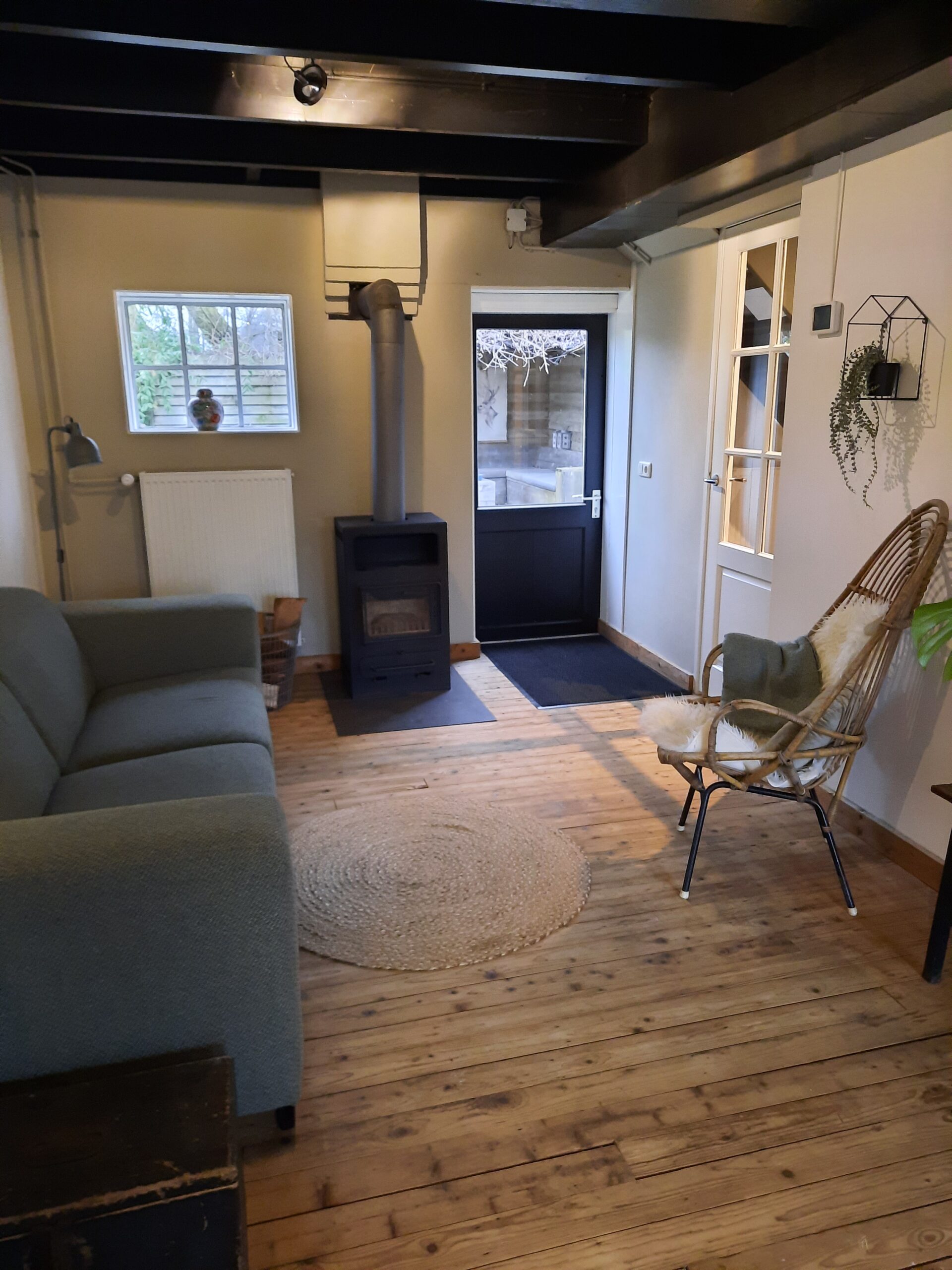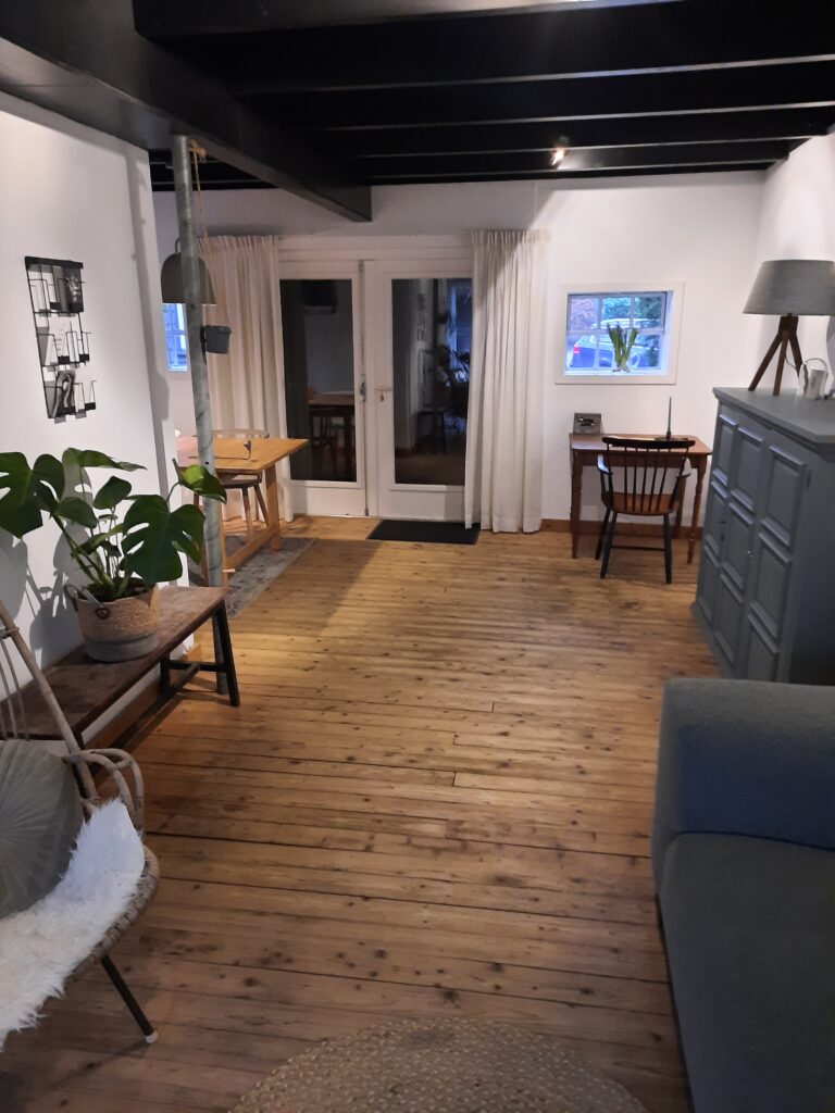 Het gastenverblijf is voorzien van een comfortabel CV systeem, maar wat is er nu fijner dan ’s avonds genieten van het knisperende vuur van de houtkachel!? Verder zijn er in de kamer een aantal spelletjes te vinden.